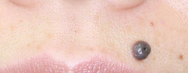 下の症例は口唇により近いところ、つまりよく動かす部位にほくろがありました。