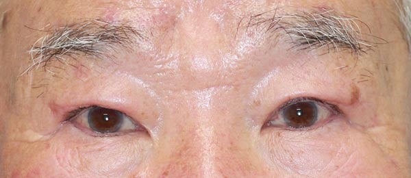 診察上、まぶたをあげる筋肉はよく機能していましたが、上まぶたの余剰皮膚が多く