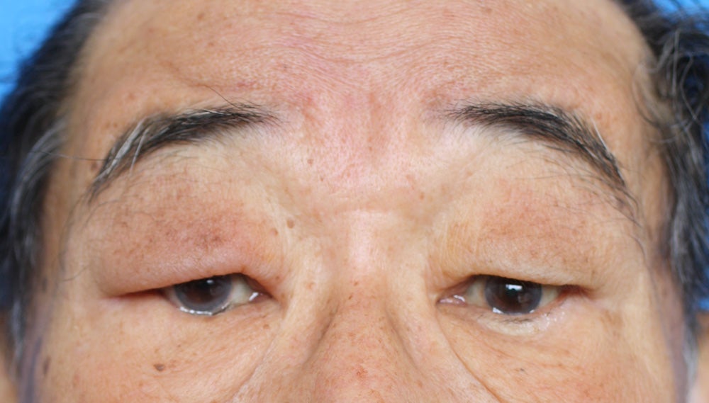治療としては、挙筋前転術という方法を用いて、まぶたを上げる筋肉の付着部を強化して、まぶたが開きやすくなるようにします。