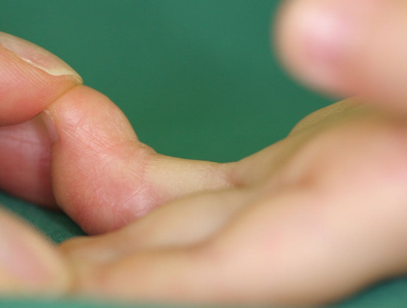 その後お子さんの指がまっすぐ伸ばすことができないとのことで、形成外科に受診されました。