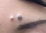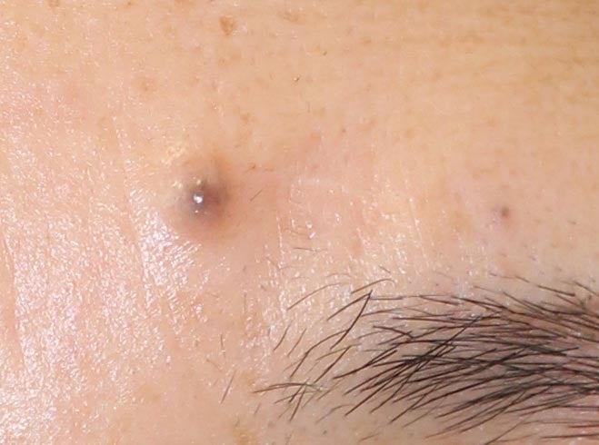 おでこ2か所のほくろのうち、大きい方をメスで切除することを希望されました。